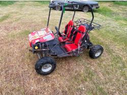 150 cc single cylinder 4 stroke liquid cooled gas engine, 5 speed transmission, kick start, hot start (inoperable), 90/100R16 rear tire, 70/100R19 front tire