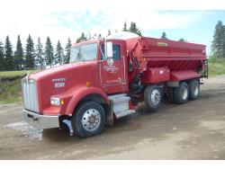 Cummins 100 Annivesary 605 HP engine, engine brake, emissions deleted, Fuller 2250 Torque 18 speed manual transmission, heavy drive line and clutch, mid rise 52 inch deluxe interior, sleeper, A/C, air ride seats, 3 way hydraulic system can run hydraulic motor, side dump, and regular end dump, air ride suspension, 14,600 lb front axle, 46,000 lb rear axles, full lockers, 3.91 ratio, 275 inch WB, all aluminum wheels, 315/80R22.5 front tires, 11R24.5 rear tires