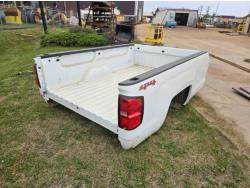 6.7 L, diesel, automatic transmission, P/W, P/L, A/C, heated mirrors, running boards, 8 ft box, aluminum toolbox, (2) 5th wheel hitch's, 1 pin & 1 ball style, spray in box liner, see photos for tailgate damage, 235/80R17 tires