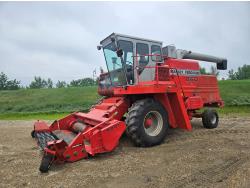 Melroe 388 10 ft pick-up header, Perkins 6 cylinder diesel engine, 2 speed Hi/Lo hydrostatic transmission, variable speed reel, chopper, A/C, radio, 23.1-30 front tires, 14-16.1 rear tires