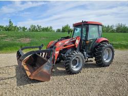 Case LX132 loader, 84 inch bucket, grapple, Iveco 3.3 L 4 cylinder 75 HP, diesel engine, 12 speed manual transmission, cab, shuttle shift, joystick, A/C, radio, 540 PTO, 3 point hitch, 3 rear hydraulic outlets, 11.8-24 front tires, 16.9-30 rear tires