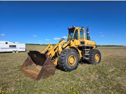 Enclosed cab, log grapple, front tire chains, 23.5-25 tires