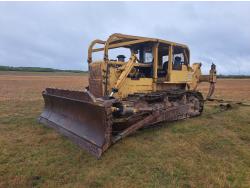 Open station with canopy, diesel engine, powershift transmission, 14 Ft 8 inch 4 way angle dozer, ripper, Has a gas pony start motor, 24 inch track pads, single grousers, ice cleats