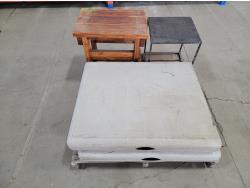 Wooden table 23 inch w x 16 inch d x 19-1/2 inch h, metal table 15-3/4 inch x 15-3/4 inch x 16-1/2 inch h