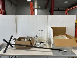 Door frame kit, under floor 3 ft x 7 ft heat pad, paint trays, corner shower baskets, (2) stretch table covers, dart board cabinet
