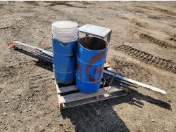 1651 (2) Metal Barrels, Metal Stand and Qty of Metal Fence Posts