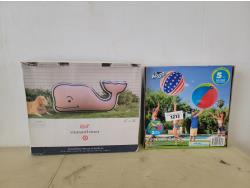 5095 2 Piece 5 Ft Beach Balls and Inflatable Whale Sprinkler (Unused)