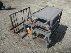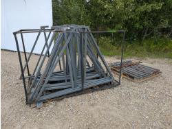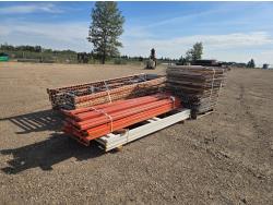 (7) 4 ft x 12 ft end frames, (16±) 4.5 inch x 9 ft shelf beams, (8) 42 inch x 101 inch metal frames, (25±) 48 inch x 52 inch wire shelves