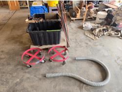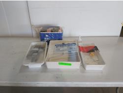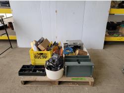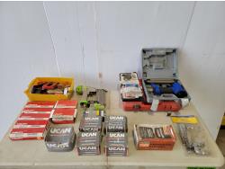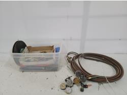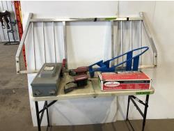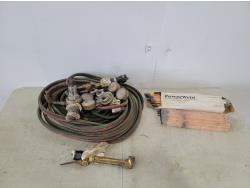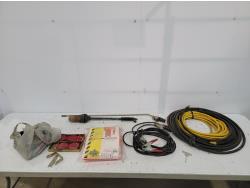 Victor cutting torch with hose and regulator, screwdrivers, sanding belts, hole saws, timer, cut-off discs, caulking guns