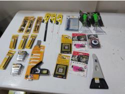 Ice scrapers/scraper blades, voltage sensor, padlock, Brad nails and staples