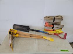 1128 (2) Garant Muck Scoops, (1) Track Shovel, (1) 1 Inch and (6) 2 Inch Slings