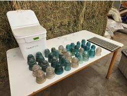 170 Qty of Glass Telephone Line Insulators & Vintage Bingo Board