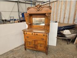 167 Folding Wood Table & Vintage Cabinet with Mirror
