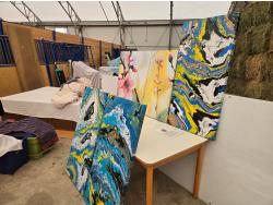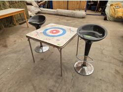 146 (2) Upholstered Stools, Clown Ornament, Wood Lattice Clothes Basket