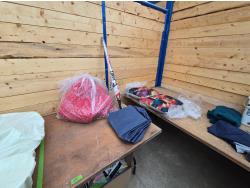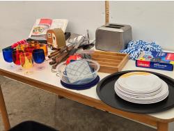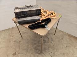 104 Folding Table, JVC Stereo Receiver, RCA VHS Player Qty of Clothes Hangers
