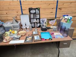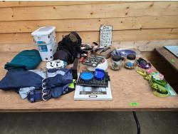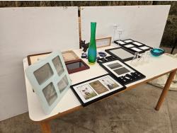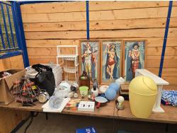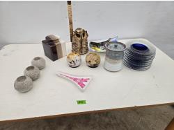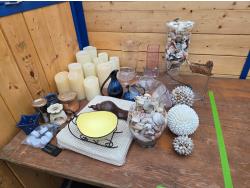 candle holders, ornaments, drawer filling cabinet, books, pots, pictures vases, gift bags, miscellaneous
