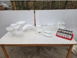 131 (14) Pieces of Milk Glass & (12) Piece Milk Glass Spice Rack