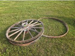 159 (1) 52 Inch Wooden Wagon Wheel, (1) 52 Inch Wagon Wheel Rim