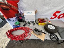 Multiple hose nozzle's, (2) pairs of work gloves, fountain pump (unused), electric bug trap, (2) 2.0 millimetre super trim wire