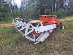 1000 PTO, left discharge, rear bale loader, 40 bushel grain tank, hydraulic chute deflector, 16.5L-16.1 tires