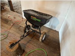 Yard machines broadcast spreader with 8 HP engine and 24 inch spread. 5 speed forward and 2 speed reverse. (running condition unknown)