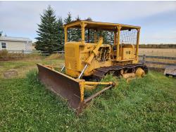 Open station, 6 cylinder diesel engine, 6 speed manual transmission, 12 Ft dozer, winch, was running when parked a few years ago., 20 inch track pads, single grousers