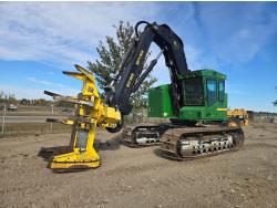 A/C, John Deere FR21B feller buncher, high rotation wrist, reduced tail swing, high and wide under carriage, 28 inch track pads, single grousers