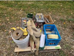 ratchet straps, Paint supplies, saw blades, miscellaneous items