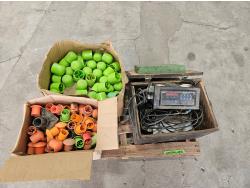 1239 Qty of Plastic Tent Stake Covers, Rebar Mushroom Safety Caps and Digital Weight Indicator