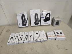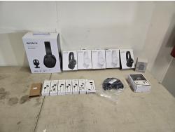 (1) wireless head set, (5) head sets, (8) head phones, (1) noise cancelling head set, (1) Sony wireless speaker