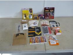 Painting supplies, first aid kit, long reel tape measure, snow brushes, paint sprayer, miscellaneous items