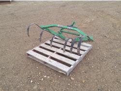 John Deere loader, 60 inch bucket, Yanmar 1.4 L 3 cylinder 23 HP, diesel engine, 20 PTO HP, 4 speed manual transmission, open station platform, joystick, front PTO, 540 PTO, 3 point hitch, 72 inch angle blade, 25X8.50-14 front tires, 13.6-16 rear tires