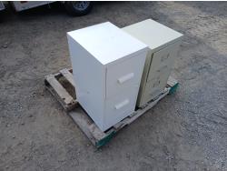 (1) Beige 2 drawer file cabinet, (1) White 2 drawer file cabinet