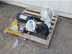 (1) Trekk cycle sleeping bag, (1) Maison ribbed indoor/outdoor carpet runner, (2) Honeywell/Super household fans, (1) Sunbeam space heater, (1) outdoor thermometer.