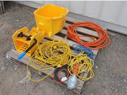 (1) Mop bucket with wheels, (4) power cords, (1) Treble light.