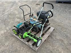 Lawn Master push mower, Green Works push mower, Certified plug in weed wacker, ProWash pressure washer