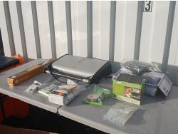 Multiple clamps, pliers, screw drivers, tie down straps, and other various hand tools, and accessories.