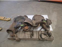 qty of saw blades, Wire rope winder, measuring tool, large qty of wood working clamps, small tools