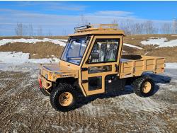 1000 cc engine, automatic transmission, Hi/Lo range, reverse, 4 door enclosed cab, 5 passengers, A/C, heater, windshield, power steering, front winch, front brush guard, manual dump box, receiver hitch, Personal inspection is recommended before purchasing, 27X9.00R14 front tires, 27X11.00R14 rear tires