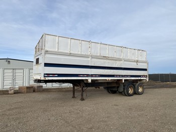 King pin hitch, 8 ft 4 inch box width, 105 inch side wall height, poly box liner, air brakes, spring suspension, 27,000 lb axles, 11R22.5 tires