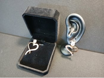 912 14K Heart Cut Dangle Earrings (Unused)