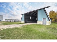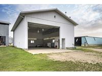 Home 1973 built, 1800± sq ft (4) bedrooms, (3) bathrooms Main floor laundry Stucco exterior, tar and gravel roof Hot water base board heating New HE boiler last year, HWT 2015 Carpet & linoleum flooring Main Floor Large rear porch w/ 2 pce bath & laundry room w/ sink Open concept kitchen & dining area w/ U shaped kitchen, island w/ power, counter top electric range, BI oven, & access to dual sided wood burning fireplace Bright living room w/ A-frame style windows, dual sided wood burning fireplace, front door access & closets, & attached garage access 2 large bedrooms w/ double closets 5 piece main bath w/ double sinks Developed Basement 2 large bedrooms 5 piece bath w/ double sinks Large family room w/ dual sided wood burning fireplace Mechanical room w/ gas stove (used for canning) & well system Attached Garage Single Vehicle Heated Outbuildings 34 x 64 Ft, insulated, heated w/ in floor heat & HE boiler, concrete & small portion wood floor, portion used for paint room w/ exhaust, bolt bins, air compressor, (2) 10’ high doors, shingled roof 34 x 50 Ft, insulated, heated, concrete floor, mechanical room w/ steam washer & exterior concrete washing apron, air compressor, 14 Ft door, tin roof 36 x 80 Ft, metal clad cold storage building w/ 12 Ft doors on each end, dirt floor, tin roof 40 x 80 Ft, metal clad cold storage building w/ (4) 14 Ft doors, gravel floor, tin roof 48 x 96 Ft, steel frame cold storage building, concrete floor, 48 x 100 Ft open faced machine shed attached at rear 26 x 100 Ft open faced machine shed Grain Handling System MC 975 Continuous Grain Dryer & leg grain handling system, 4-Westeel bins on hoppers, 2-Butler bins on hoppers, 1-Viterra on Hopper, 8-Weststeel on concrete, 4-Butler on concrete, 1-Superior on hopper, 7 older wood granaries Utilities Power, natural gas 2011 drilled water well (400 Ft deep, 7.2 gals per minute registered at time of drilling) Above ground septic discharge system