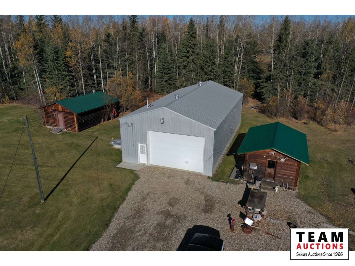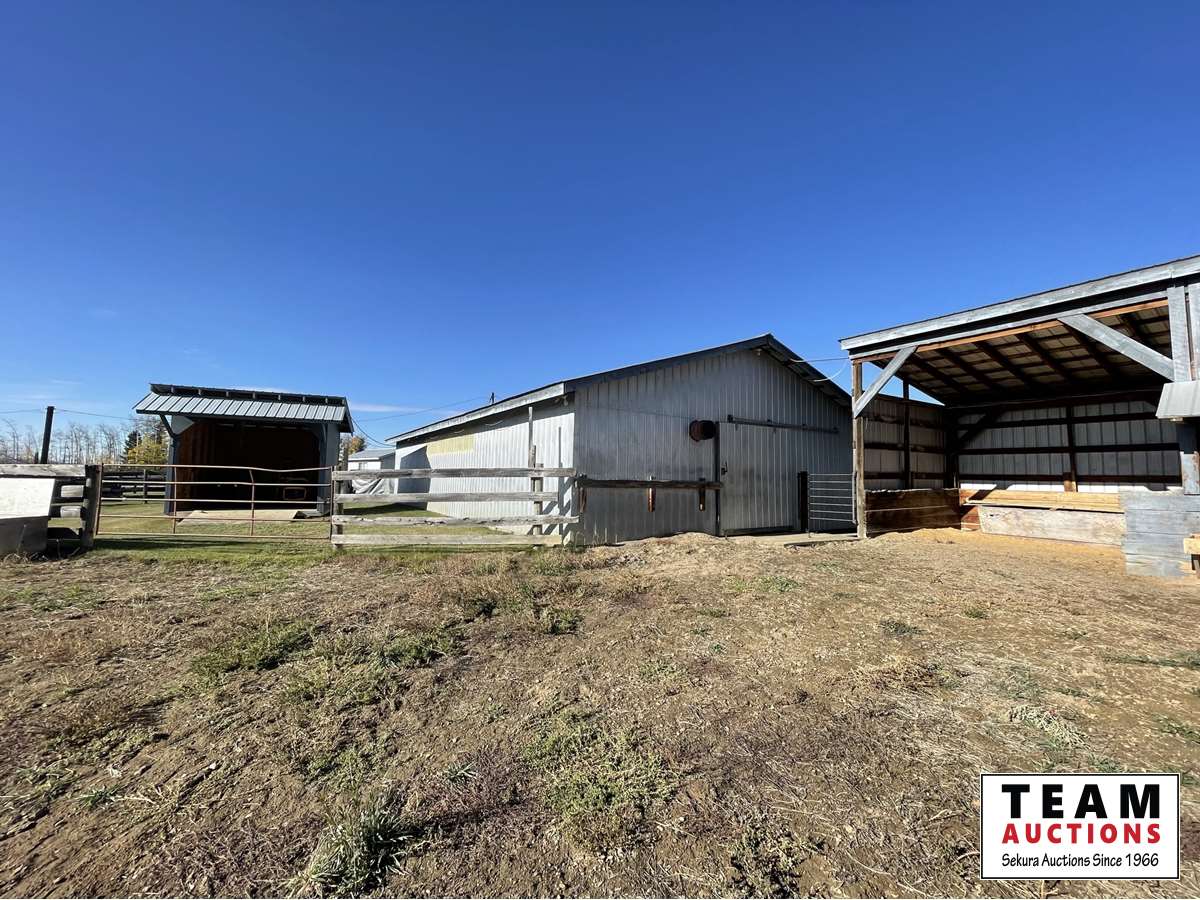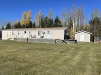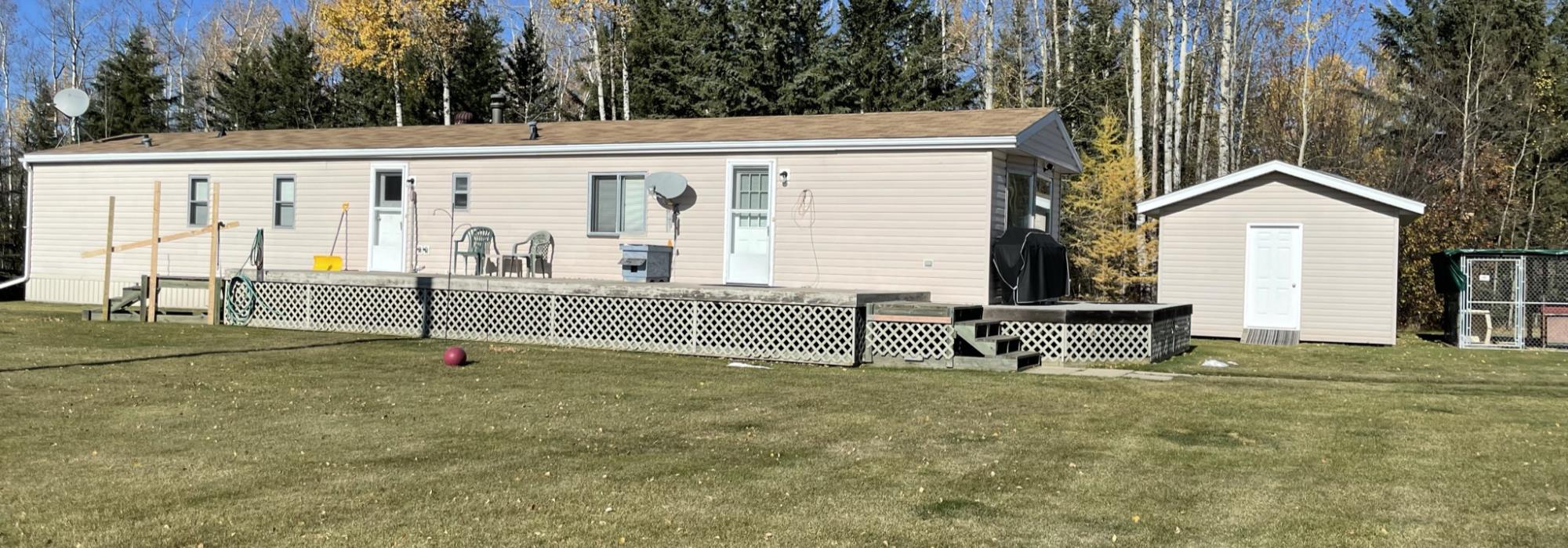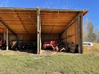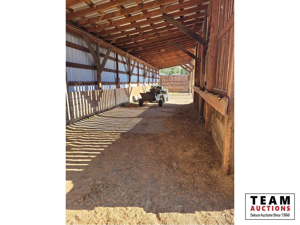 THE HOME Well kept, updated 1184 sq ft 3 bed 2 bath 1988 Shelter Industries Inc mfg home 2010 major renovations - Kitchen cabinetry, bathroom vanities, bathroom tub in main bath, shower door in en-suite, sink, toilets in both bathrooms, flooring (carpet, laminate, and vinyl tiles). Walls in primary bedroom and the second bedroom were redone with drywall. Vinyl siding. Interior painted. 2019 - south side of home’s roof & the house storage shed was re-shingled. Kitchen / Dining - Bright spacious with vinyl tile flooring, updated white cabinetry, pantry, skylight. Stove & hood fan new in 2010, Fridge new in 2020. Living room with vaulted ceiling Back entry: electric hot water heater new in 2018. Furnace (original) was serviced in Sep 2021. Electrical panel is located in this room. Counter is included. Primary bedroom with 3 piece en-suite (shower) & mirrored closet doors, Second bedroom is currently used as office and the third bedroom is used for storage. Foundation - wood blocking. Deck was constructed in 2008 14x16 storage shed with vinyl siding, asphalt shingles, steel insulated door, sky light but no windows THE SHOP 30x54 ft Metal clad, In-floor heat, enclosed work room with work bench and cupboard, mechanical room with Mainstream water filtration system, overhead door Floor drain. Concrete floor. 220 wiring. Compressor is included. FOUR POLE SHEDS Large livestock shelter located east of barn 47x31 open faced shed with power 45x26 open faced with 15x26 attached lean-to 42x28 open faced shed located in clearing east of yard THE BARN 28x47 ft Box stalls and open storage area. Painted OSB flooring. WORKSHOPS Original homestead cabin—power from extension cord from shop Square timbered shed with metal roof, power, 220 wired, wood stove. Metal clad shed by barn OTHER OUTBUILDINGS There are several other sheds on this property.