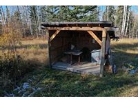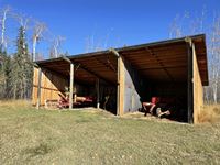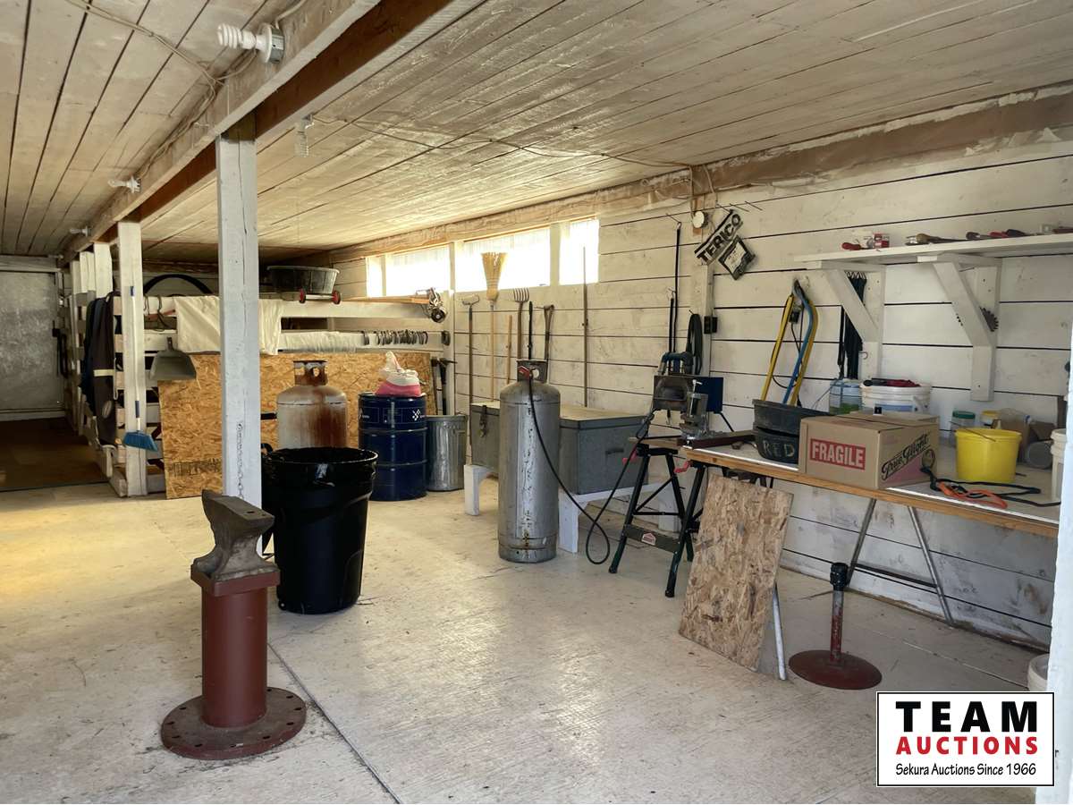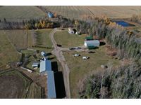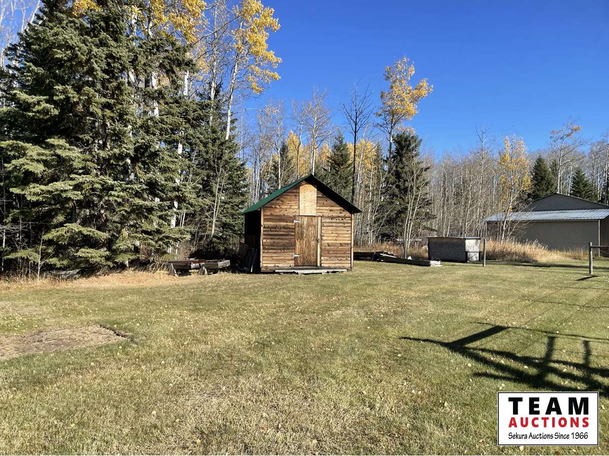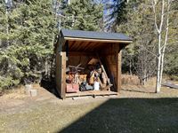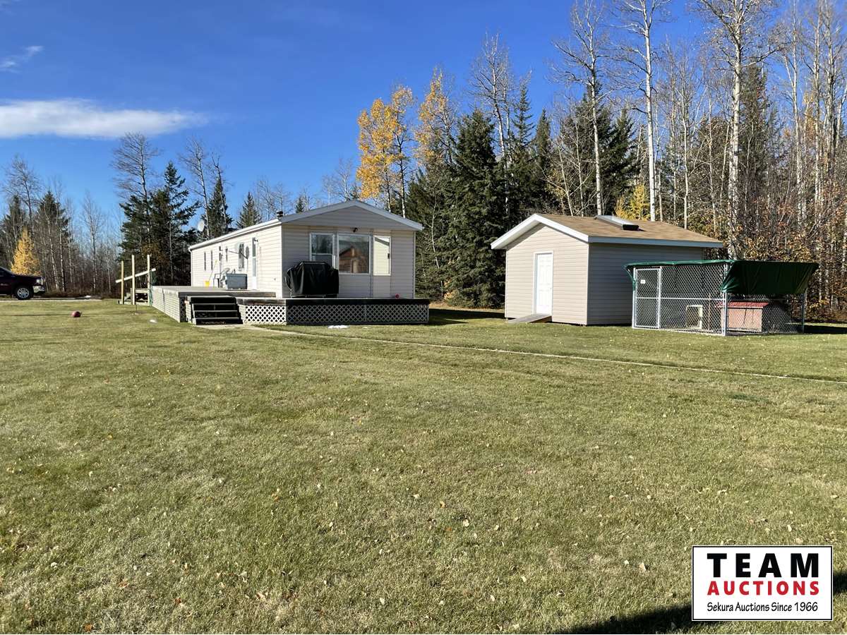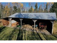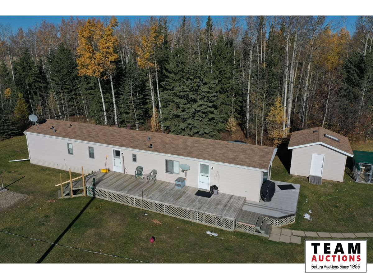 THE HOME Well kept, updated 1184 sq ft 3 bed 2 bath 1988 Shelter Industries Inc mfg home 2010 major renovations - Kitchen cabinetry, bathroom vanities, bathroom tub in main bath, shower door in en-suite, sink, toilets in both bathrooms, flooring (carpet, laminate, and vinyl tiles). Walls in primary bedroom and the second bedroom were redone with drywall. Vinyl siding. Interior painted. 2019 - south side of home’s roof & the house storage shed was re-shingled. Kitchen / Dining - Bright spacious with vinyl tile flooring, updated white cabinetry, pantry, skylight. Stove & hood fan new in 2010, Fridge new in 2020. Living room with vaulted ceiling Back entry: electric hot water heater new in 2018. Furnace (original) was serviced in Sep 2021. Electrical panel is located in this room. Counter is included. Primary bedroom with 3 piece en-suite (shower) & mirrored closet doors, Second bedroom is currently used as office and the third bedroom is used for storage. Foundation - wood blocking. Deck was constructed in 2008 14x16 storage shed with vinyl siding, asphalt shingles, steel insulated door, sky light but no windows THE SHOP 30x54 ft Metal clad, In-floor heat, enclosed work room with work bench and cupboard, mechanical room with Mainstream water filtration system, overhead door Floor drain. Concrete floor. 220 wiring. Compressor is included. FOUR POLE SHEDS Large livestock shelter located east of barn 47x31 open faced shed with power 45x26 open faced with 15x26 attached lean-to 42x28 open faced shed located in clearing east of yard THE BARN 28x47 ft Box stalls and open storage area. Painted OSB flooring. WORKSHOPS Original homestead cabin—power from extension cord from shop Square timbered shed with metal roof, power, 220 wired, wood stove. Metal clad shed by barn OTHER OUTBUILDINGS There are several other sheds on this property.