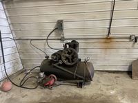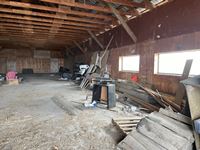 2 fridges, stove, microhood, dishwasher, washer & dryer, 2 wood stoves, compressor, welder, overhead door motor & heater (both not installed), wagon (lawn ornament), fluent alarm equipment. Metal Gates mounted on posts , 1500 bu grain bin