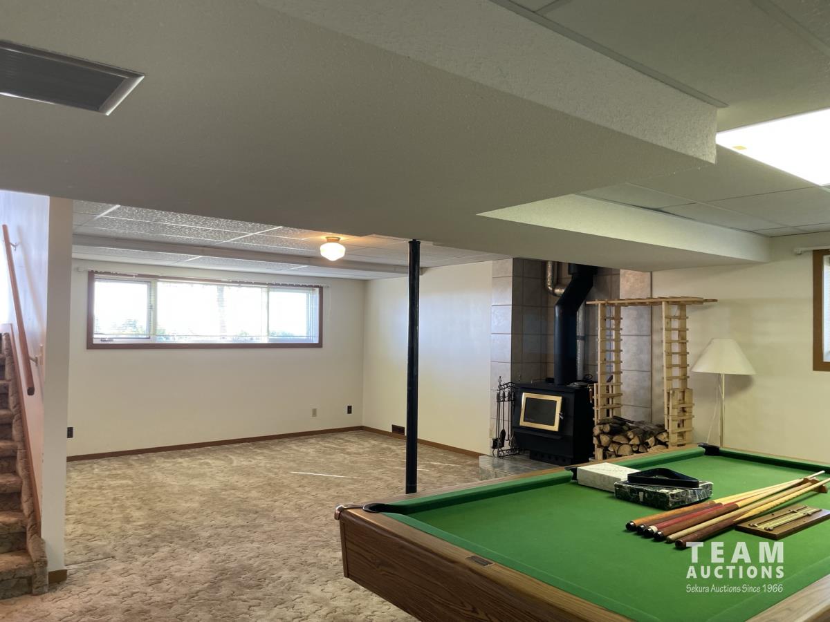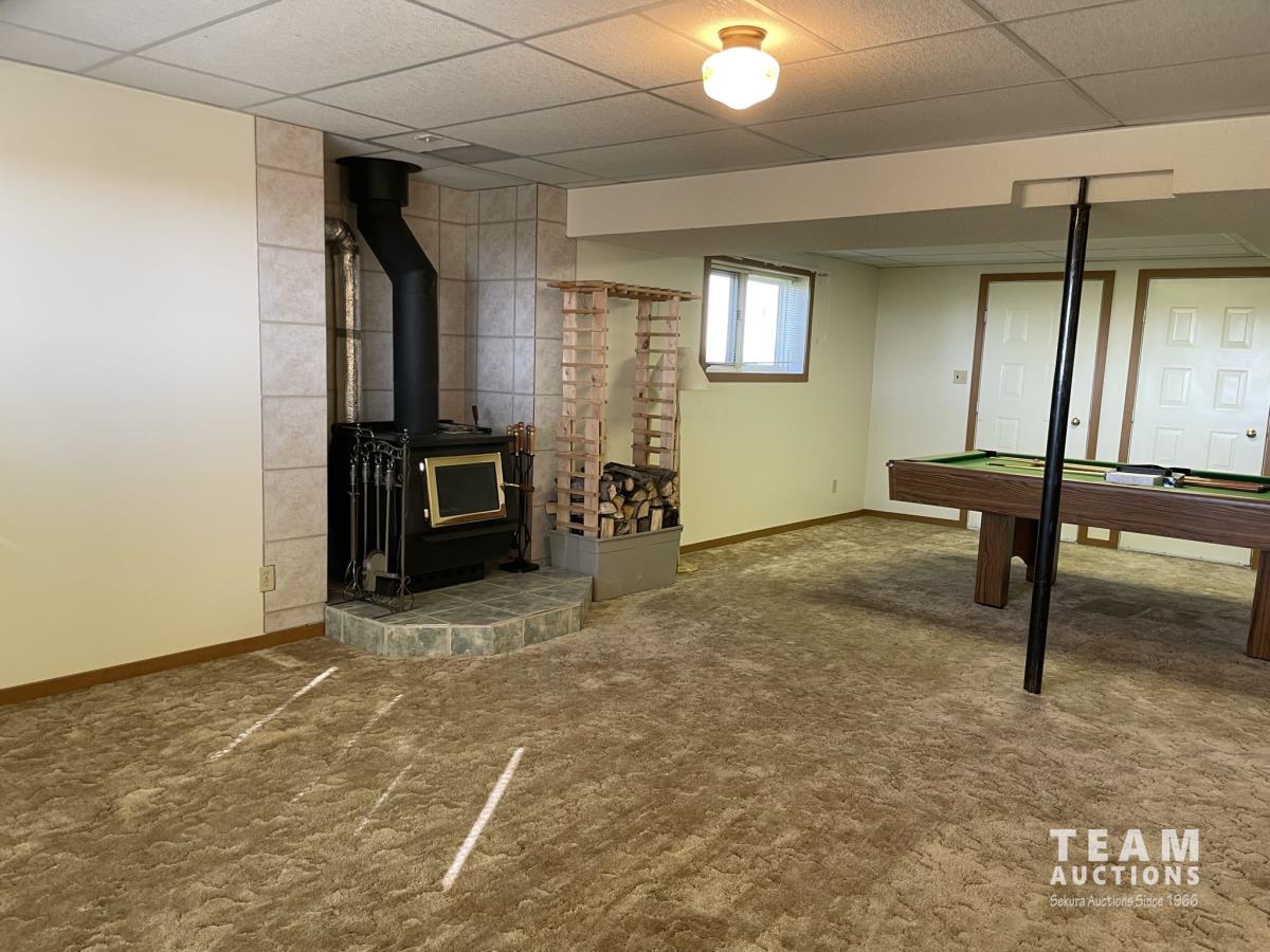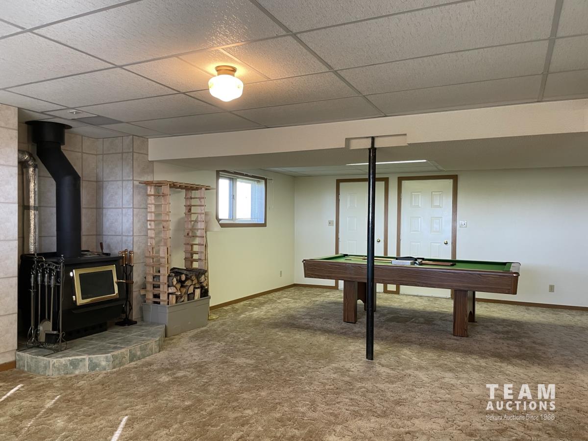 Main level has living room, dining, kitchen with oak cabinetry, 3 bedrooms, 4 pc main bath and 3 pc ensuite, large pantry storage area off kitchen dining with access to outside Lower level features family room (plumbed for wet bar) with wood stove, 2 bedrooms, 4 pc bath, large room that could be a bedroom or media room (no closet), mechanical/laundry room, cold room, storage room.