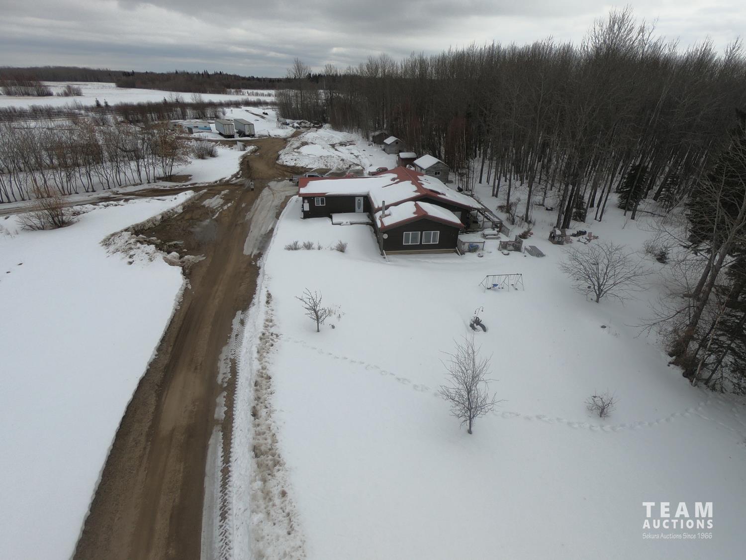 Fantastic hobby farm property comprised of 68.23± acres with fenced pasture, small dugout & animal shelter, approx. 14 acres of hay, 3 acres of U-Pick raspberries & saskatoons, remainder bush & yard site. Rustic 1750 sq ft home with 4 bedrooms & 3 baths. Enter the home through side entrance & covered deck. 3 piece bath with main floor laundry. Open concept kitchen/dining/ & living room area with impressive vaulted ceilings. Living room has stone faced wood fireplace with Kingsman insert & patio doors to side deck. L shaped kitchen with white appliances & ample amount of cabinets, large walk in pantry. Off the kitchen are two bedrooms. Down the hall you will find a room to house deep freeze & larger kitchen appliances, 2 piece bath, bedroom w/walk in closet & master. The master having a large walk-in closet & 4 piece ensuite with stand up shower & air tub. Downstairs you will find partially finished family room, storage room, cold room & mechanical room which houses furnaces, hot water on demand, & water well pressure system. Home has 22x24 attached garage insulated and finished inside. The original portion of the home is a 1970’s model which was moved to this property in 2004 and placed on screw pilings (crawlspace access) and there was a 1300 sq ft + addition built and put on the pressure treated wood basement in 2011. Home has mostly vinyl windows, a good metal roof, & split log siding. Plenty of sheds for storage, large vegetable garden, etc. All of this nestled along side paved Hwy 813 just north of Athabasca.