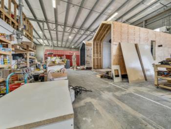 Commercial Building 10,996± sq ft ext Concrete foundation walls on strip footings Structural steel framework Reinforced concrete structural slabs Approx 24 ft clear height Pre-cast concrete panels Commercial double-paned glass in aluminum frames Rooftop HVAC units, radiant units in warehouse areas 400 amp service with 100 amp splinter boxes Fluorescent fixtures Wet sprinkler system Grade loading only On-site paved parking Fenced yard