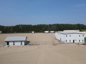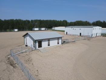 Property Features Zoned Rural Industrial Paved access off 50 Ave, offering great business exposure Entire lot is compact gravel 250 ft Drilled Well 2 X 2000 gal holding tanks Bexton Construction steel frame shop 3 portable skid mounted storage sheds 5 Ton 18 ft overhead crane Plenty of parking stall plug-ins Chain linked fenced yard with 3 strand barb wire