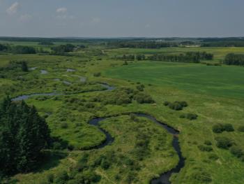 149.83± acres, 2 bedroom cabin, winding creek, surface lease revenue, bordering hamlet of Rocky Rapids.